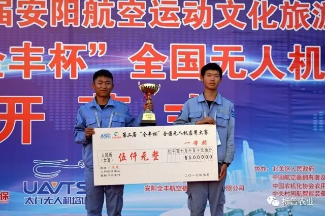 隨后進行的無人機應用大賽更是扣人心弦,引人入勝。大賽邀請18家全國各知名無人機企業(yè)參賽。比賽內容為農用植保無人機在作業(yè)時要求飛行軌跡精準,指定飛行高度和指定飛行速度情況下沿預定軌跡進行噴灑作業(yè)時方能滿足作業(yè)要求,達到噴灑效果。參賽的無人機根據(jù)要求的速度、高度作業(yè)完畢后,由測量系統(tǒng)實時給出該架次作業(yè)軌跡的飛行參數(shù),計算出該架次飛行的速度偏離度和高度偏離度,綜合二者分數(shù)后對該參賽無人機進行排名。經過激烈角逐,河南標普農業(yè)科技有限公司和安陽全豐航空植??萍脊煞萦邢薰?/span>分獲一、三等獎。