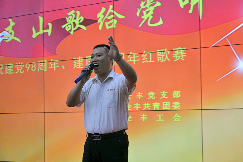 總結(jié)表彰會(huì)結(jié)束后,在全體人員高唱國(guó)歌《義勇軍進(jìn)行曲》的嘹亮歌聲中,慶祝建黨九十八周年紅歌賽拉開(kāi)了下半場(chǎng)的序幕。此次紅歌賽分為集體賽和個(gè)人賽,共有七支參賽隊(duì)伍和四名獨(dú)唱分別角逐一二三等獎(jiǎng)。從歌曲內(nèi)容、服裝隊(duì)形、演唱水平等方面進(jìn)行綜合評(píng)比打分。經(jīng)過(guò)激烈角逐,制劑分公司合唱《保衛(wèi)黃河》榮獲集體一等獎(jiǎng),航空和原藥分獲二三等獎(jiǎng)。制劑分公司袁明演唱的《祖國(guó)慈祥的母親》榮獲個(gè)人賽第 一名,仝慧和周俊峰分獲二三名。