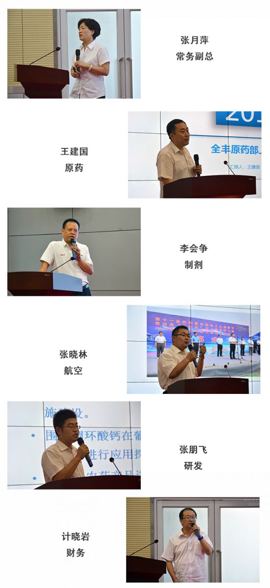 在述職環(huán)節(jié),原藥、制劑、航空、研發(fā)、財(cái)務(wù)、綜合等各分公司和部門第 一責(zé)任人依次進(jìn)行述職報(bào)告。原藥、制劑、航空還針對(duì)各自部門的銷售業(yè)務(wù)取得成績(jī)和團(tuán)隊(duì)建設(shè)等方面詳細(xì)進(jìn)行分析。