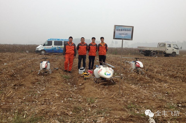 在棉花田里,自走式噴霧機(jī)、自走式旋耕機(jī)、大型棉花收采機(jī)、大型植保拖拉機(jī)及全豐航空植保農(nóng)用無人直升機(jī)齊上陣,實(shí)現(xiàn)對棉花從種到收的全程機(jī)械化作業(yè)。植保專家從作業(yè)速度、作業(yè)時間、作業(yè)效果比較分析,農(nóng)用無人機(jī)在病蟲害防治方面具有絕 對的優(yōu)勢,同時因遠(yuǎn)距離操作,避免了農(nóng)藥對人體的傷害,飛防專用藥劑的高濃度、低容量、簡包裝具備生態(tài)環(huán)保優(yōu)勢。同時,它的出現(xiàn)解決了棉花后期大型機(jī)械無法進(jìn)地作業(yè)或者進(jìn)地作業(yè)將傷害棉花產(chǎn)量的問題。