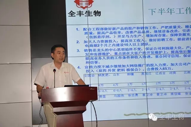 總結(jié)經(jīng)驗(yàn),發(fā)現(xiàn)問題,解決困難,展望未來。為了更好的服務(wù)廣大客戶和廣大的種植者,踐行“全心服務(wù),豐收萬家的”的不懈追求。2016年7月6日在全豐集團(tuán)新廠區(qū)的多功能報(bào)告廳,舉行了為期一天的專家技術(shù)講座和經(jīng)營工作匯報(bào)。