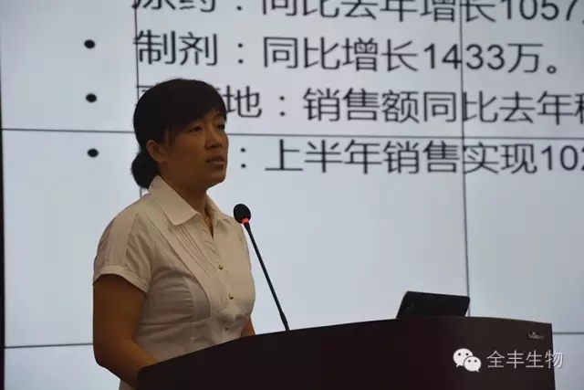 全豐集團制劑分公司張曉林就安陽全豐上半年的生產(chǎn)和銷售情況向大家匯報