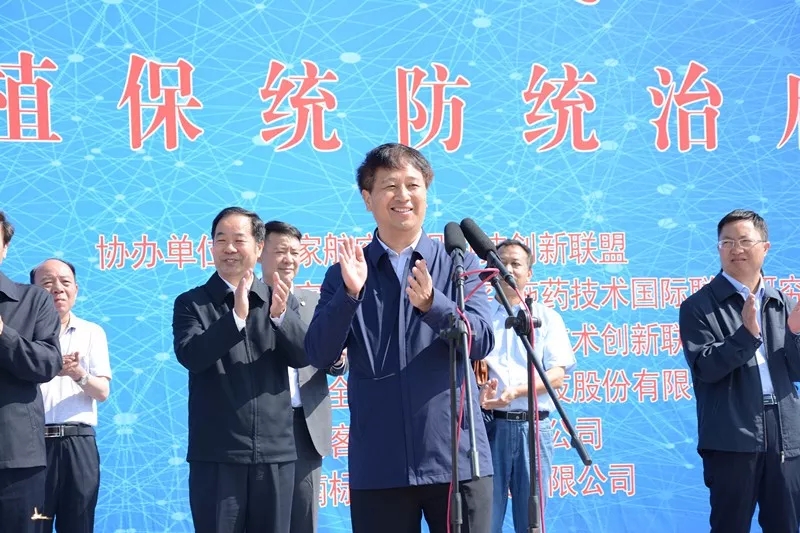 中國(guó)農(nóng)技推廣協(xié)會(huì)植保統(tǒng)防統(tǒng)治分會(huì)會(huì)長(zhǎng)、安陽全豐董事長(zhǎng)王志國(guó)在大會(huì)上做了重要演講,他講到航空植保省工、省水、適應(yīng)性強(qiáng)、突擊能力強(qiáng),是農(nóng)作物病蟲害統(tǒng)防統(tǒng)治的重要手段。經(jīng)過近幾年的發(fā)展,航空植保迎來了大發(fā)展,今天大家共同見證了植保無人機(jī)亮劍于小麥200萬畝統(tǒng)防統(tǒng)治作業(yè),相信未來不久,航空植保必將成為大面積農(nóng)作物病蟲害防治的重要力量。他指出作為中國(guó)農(nóng)技推廣協(xié)會(huì)植保統(tǒng)防統(tǒng)治分會(huì)會(huì)長(zhǎng)單位,我們深感責(zé)任重大,使命艱巨,并承諾將以“科學(xué)植保、高效植保、綠色植?!睘槔砟?,自覺維護(hù)行業(yè)利益、強(qiáng)化行業(yè)自律,與各位同仁一起把航空植保發(fā)展成為綠色農(nóng)業(yè)、生態(tài)農(nóng)業(yè)的重要支撐。同時(shí)他還承諾作為安陽200萬畝小麥統(tǒng)防統(tǒng)治的實(shí)施單位,在作業(yè)的過程中,將嚴(yán)格標(biāo)準(zhǔn)、規(guī)范操作、確保安全、注重實(shí)效,把此次的統(tǒng)防統(tǒng)治作業(yè)打造成植保無人機(jī)智能化、信息化、科學(xué)化水平的農(nóng)民信得過的品牌,成為航空植保史上新的里程碑。