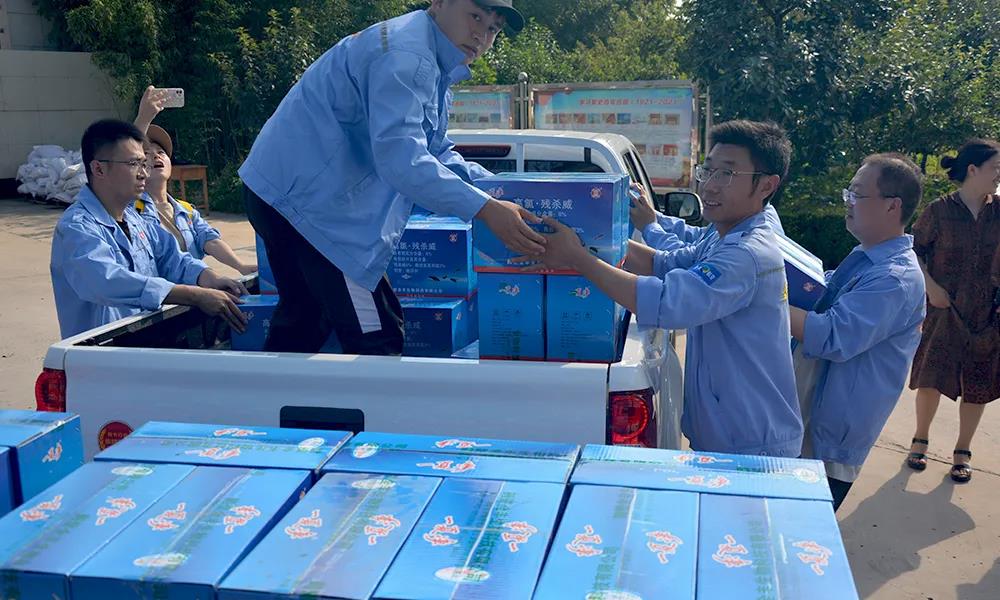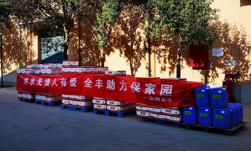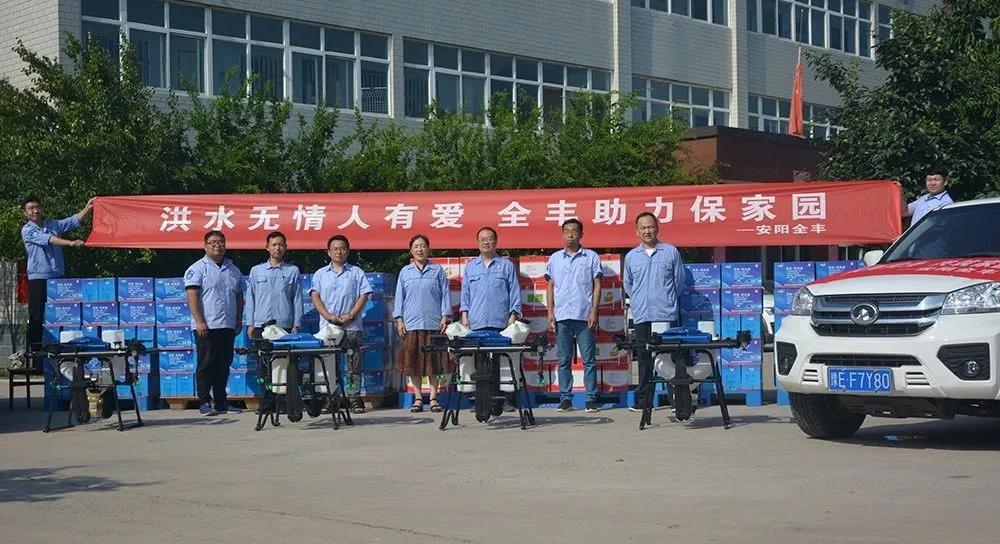 安陽全豐在自身蒙受財產(chǎn)損失的情況下,不忘企業(yè)使命,勇于承擔社會責任,心系受災地區(qū),開展生產(chǎn)自救的同時,公司董事長、總經(jīng)理王志國第一時間帶領員工積極籌措物資,緊急行動起來,聯(lián)系湯陰縣、安陽縣、北關區(qū)、文峰區(qū)當?shù)丶t十字會,向受災嚴重地區(qū)捐贈施必達、金處方、S誘抗素、“蚊蠅一夏凈”等物資將近50余萬元,并免費提供配套的無人機消殺服務。